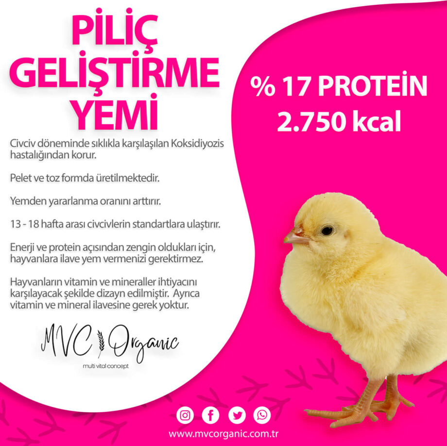 Şu anda %17 Ham Protein ve 2.750 K.cal/kg içerikli Yumurta Piliç Geliştirme yemlerimiz üretim sürecindedir.